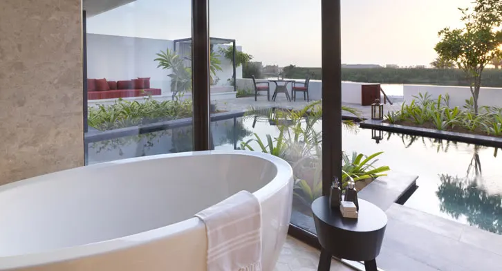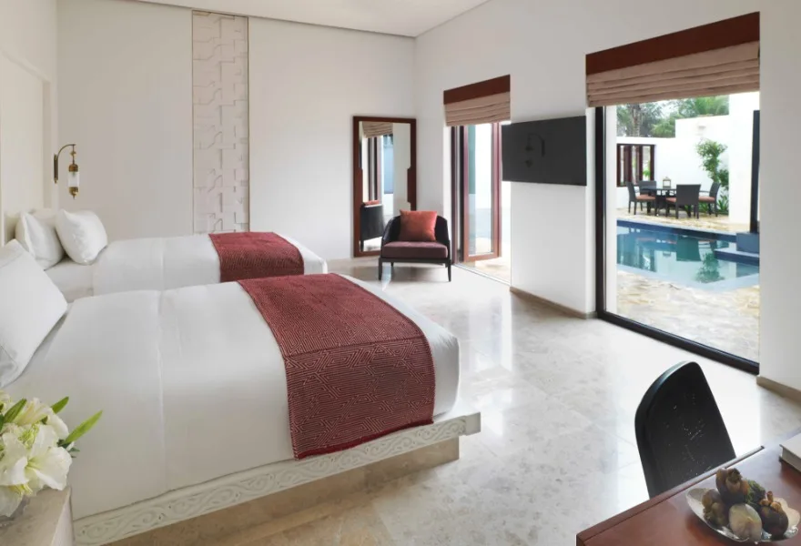Однокомнатный номер включает спальню с двуспальной кроватью king-size и ванную комнату с душем и ванной. С балкона открывается вид на закат. Среди удобств Wi-Fi, кондиционер, телевизор, кофемашина Nespresso, фирменная косметика.