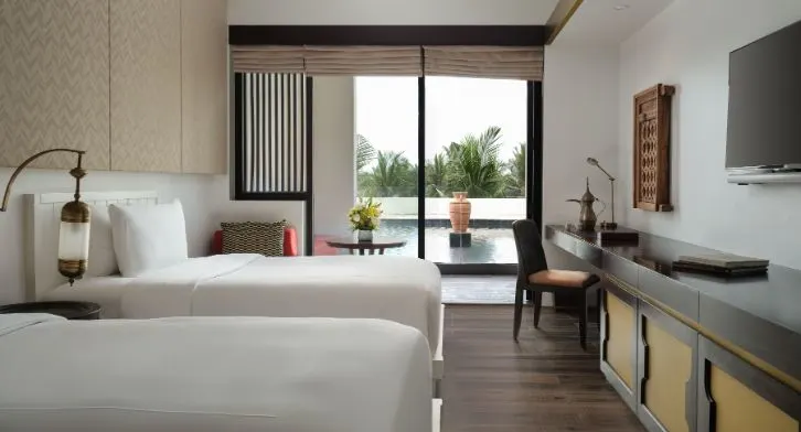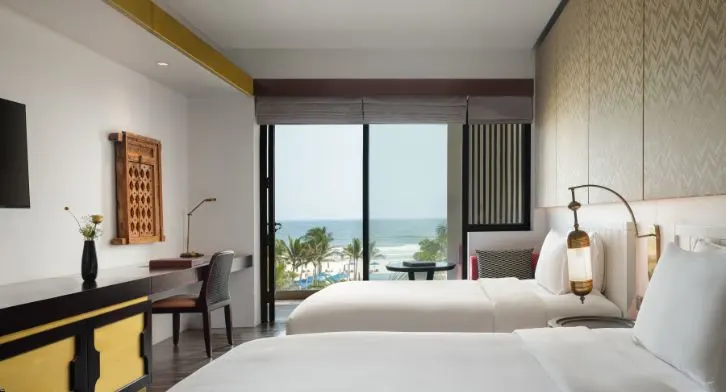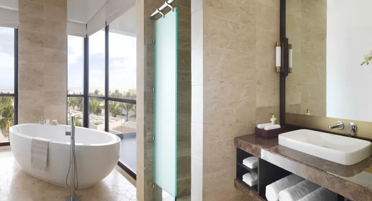Просторный номер с панорамными окнами включает спальню, ванную комнату с душем и ванной, меблированный балкон. Для размещения служит двуспальная кровать king-size/две односпальные кровати. В числе удобств Wi-Fi, телевизор, кондиционер, кофемашина Nespresso, набор гостиничной косметики.