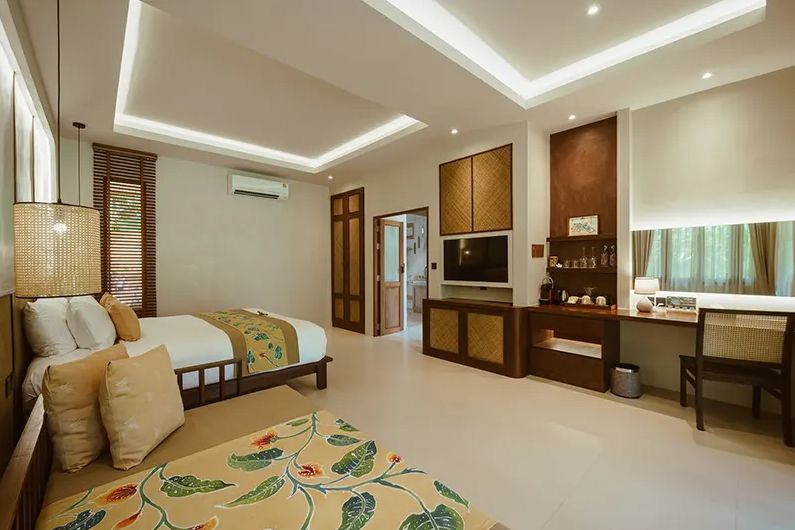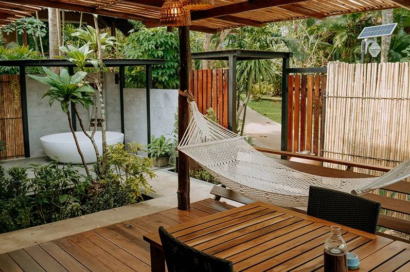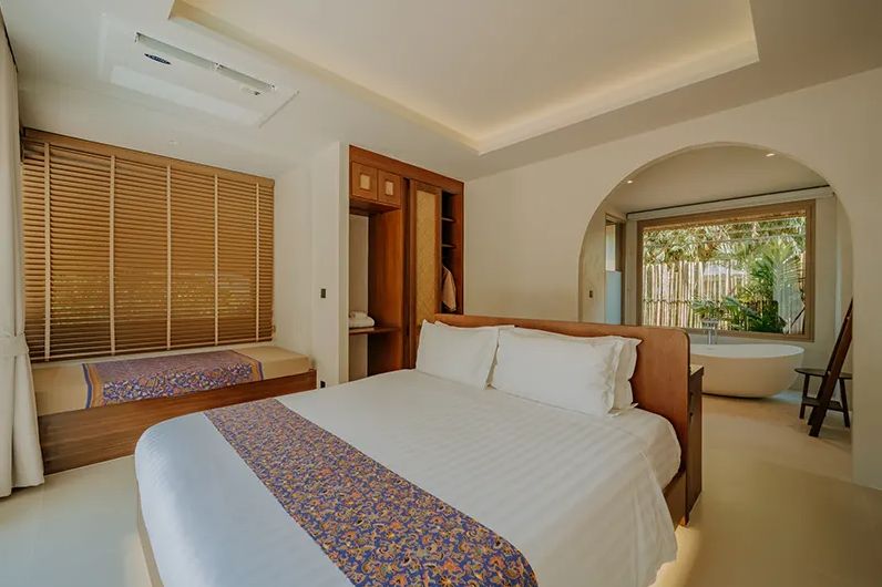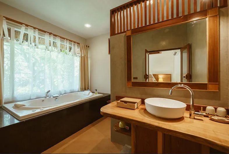 Номер оснащен террасой с зоной отдыха, двуспальной кроватью, кондиционером, телевизором с приложением Netflix, кофемашиной Nespresso, чайным набором, мини-баром, сейфом, телефоном. Ванная комната с душем, джакузи, феном, косметикой премиум-класса, предоставляются халаты и тапочки. В целях безопасности коттедж принимает гостей старше 12 лет.