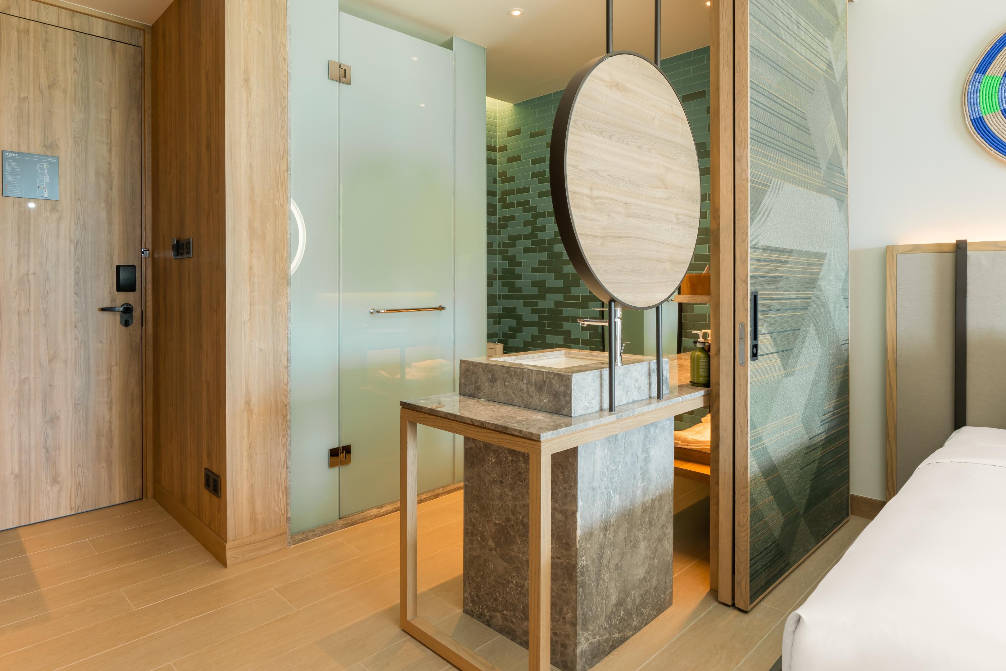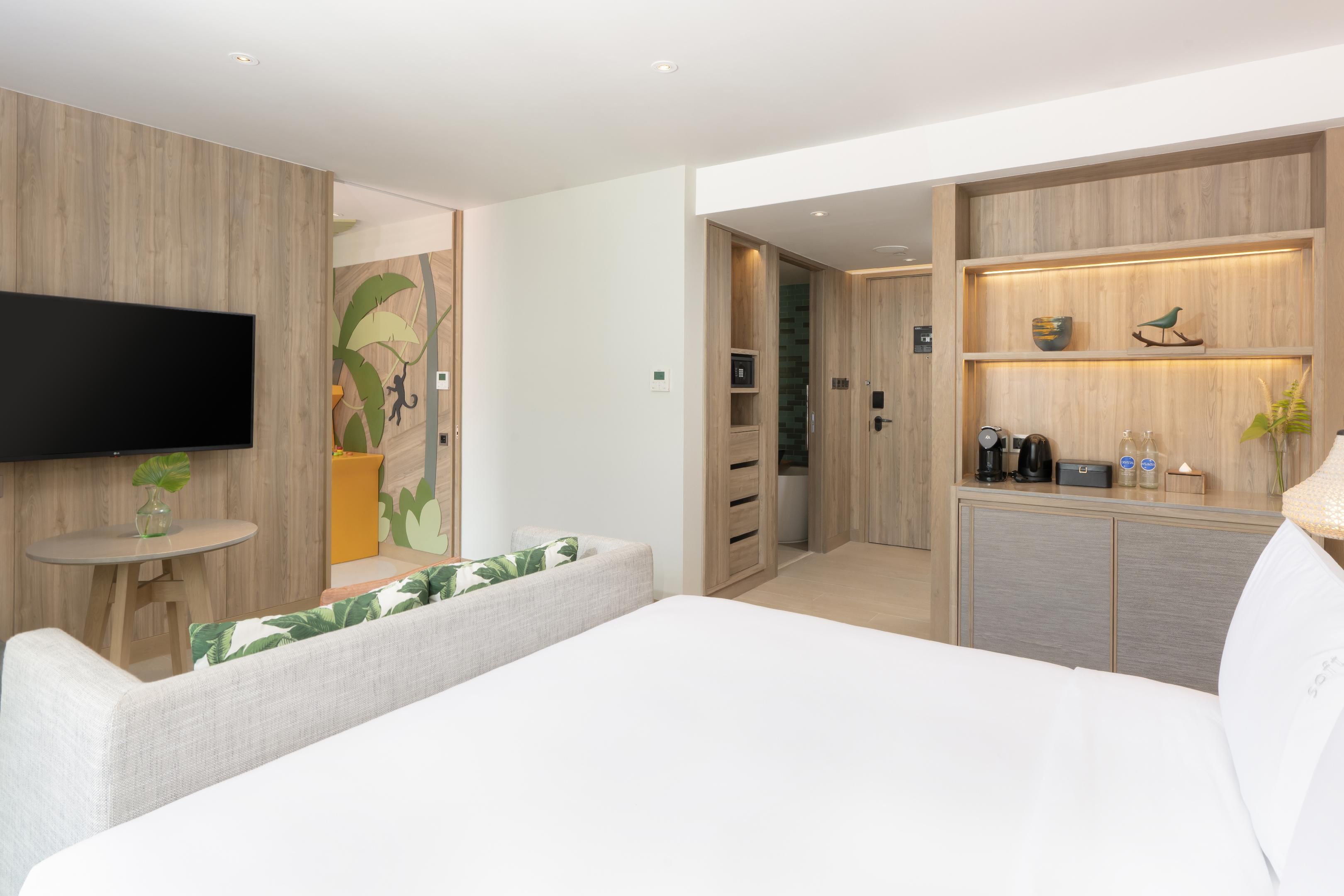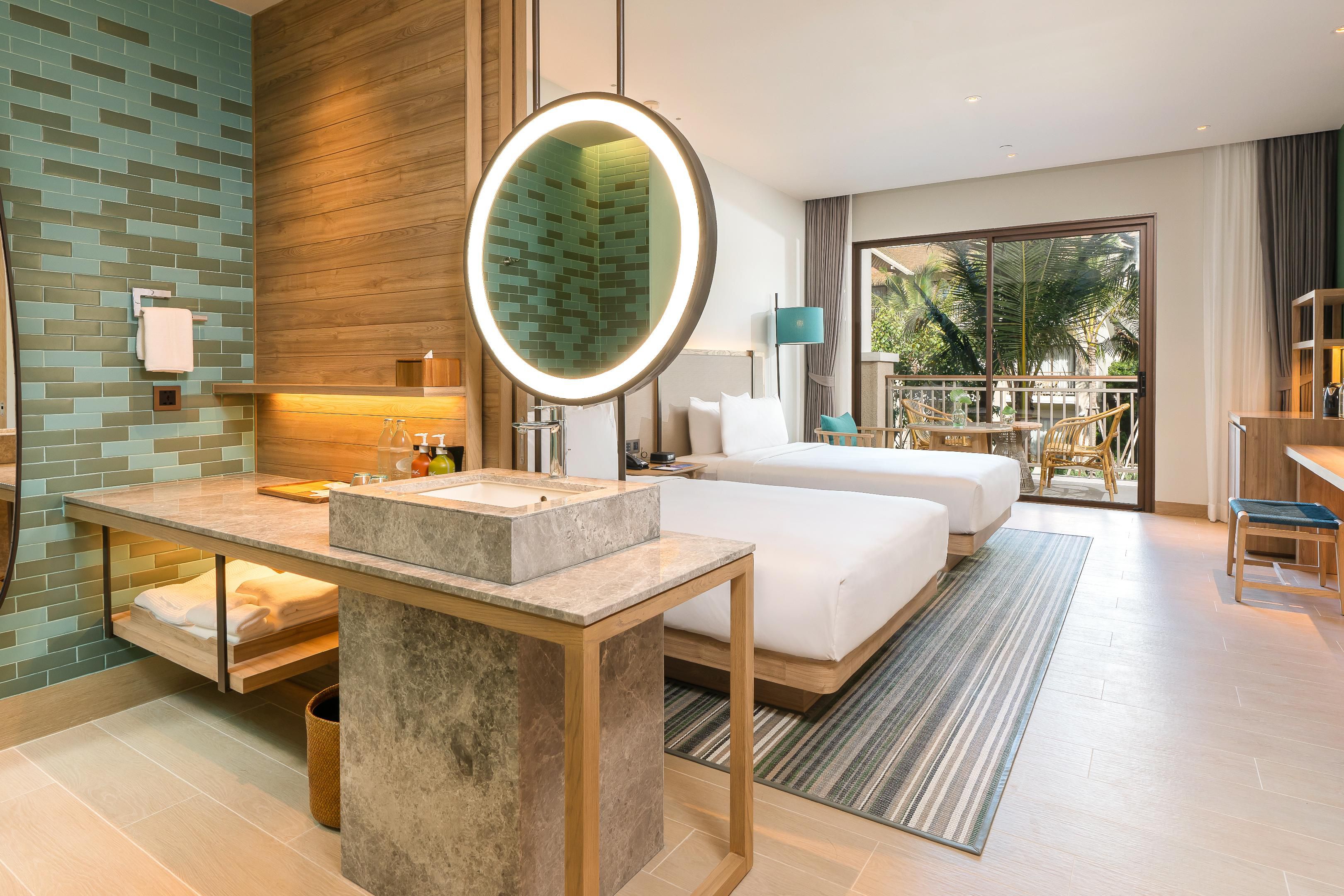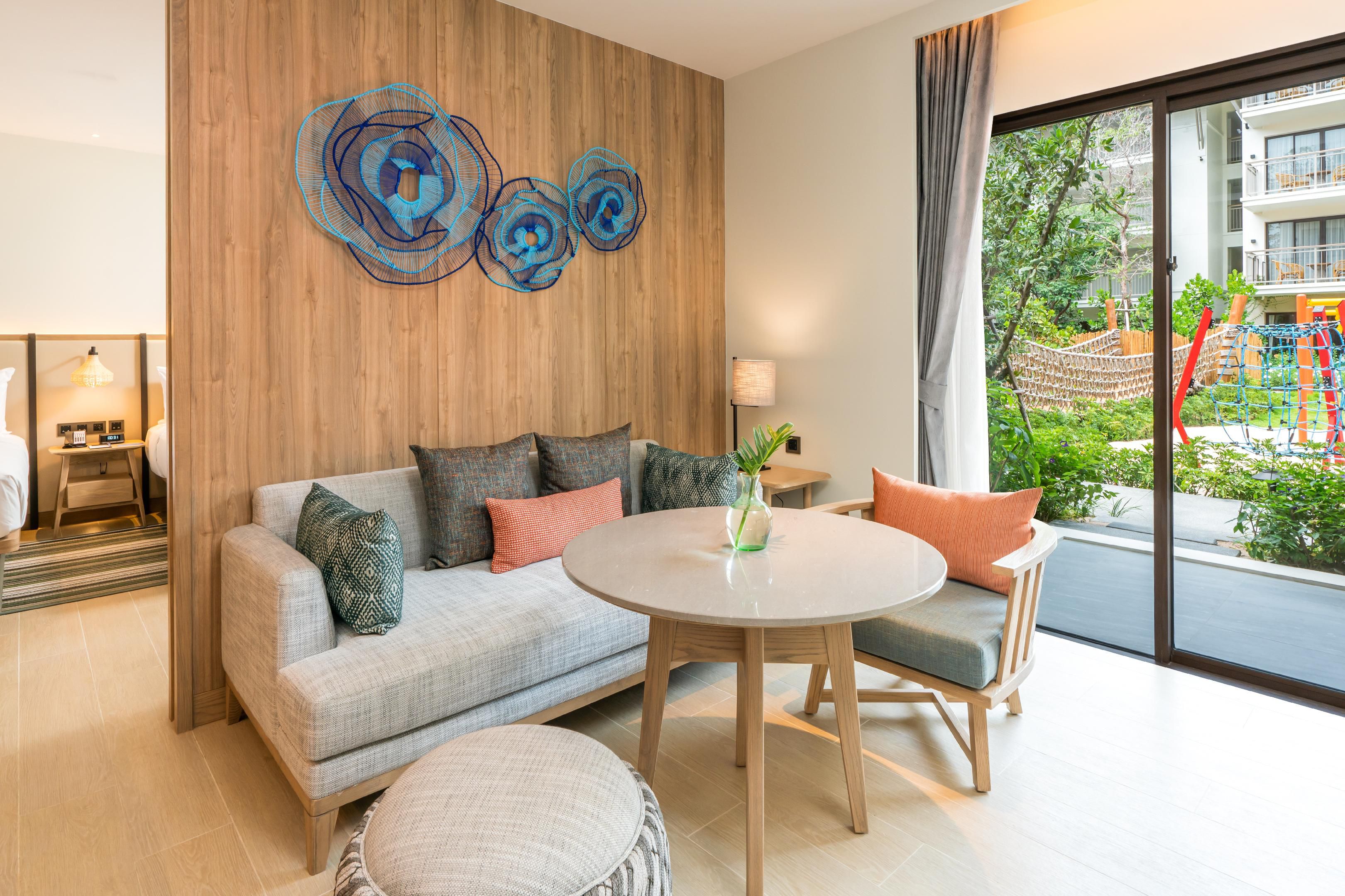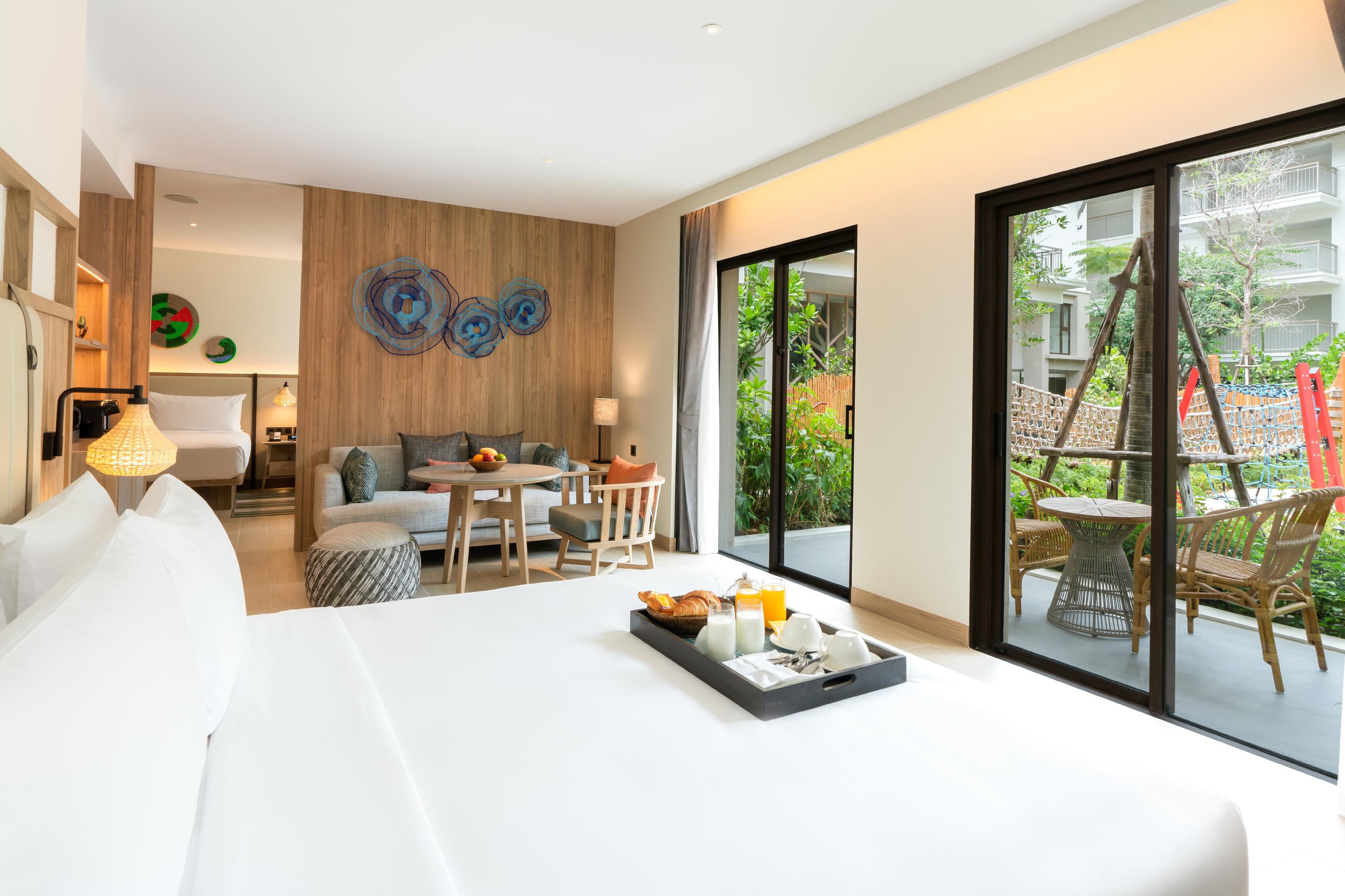 Номер с выходом к бассейну состоит из спальни с двуспальной кроватью king-size/2 односпальными кроватями, ванной комнаты с душем. В удобства включены Wi-Fi, кондиционер, телевизор, телефон, мини-бар, сейф, фен, туалетные принадлежности, мини-холодильник, халаты и тапочки.