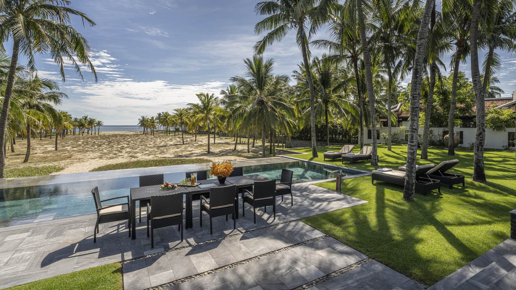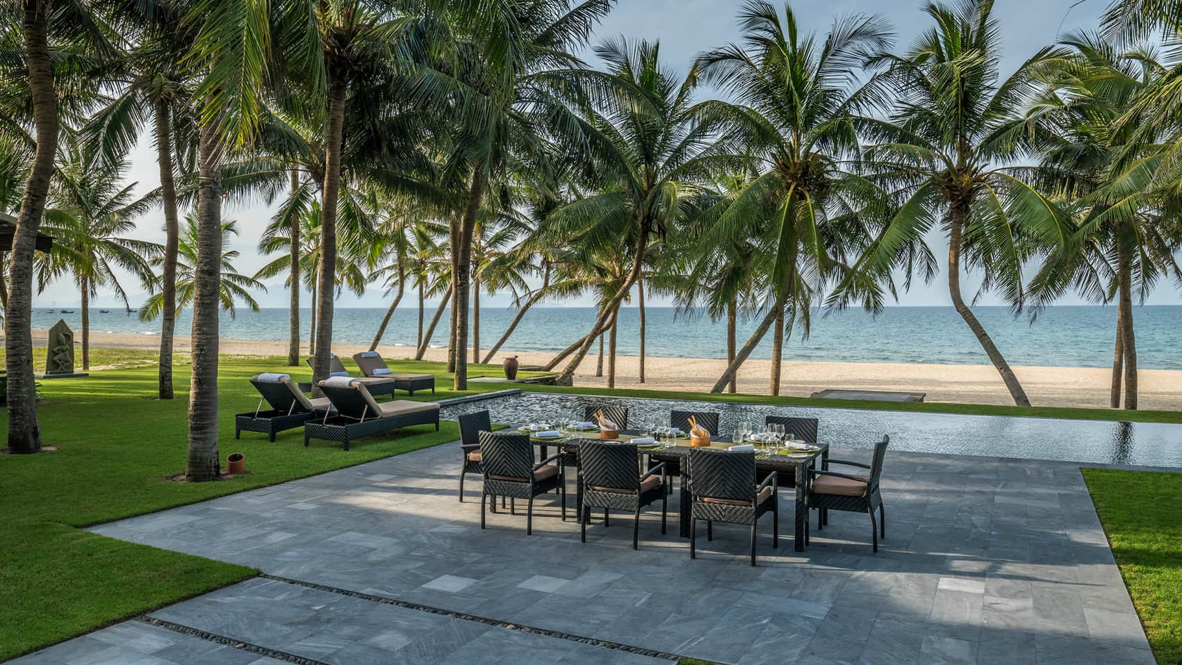 Это спокойное место имеет красиво оформленные виллы с великолепным видом на океан, частные сады и бассейны с подогревом. Обслуживание потрясающее, еда на высшем уровне, и спокойный спа-центр "Сердце Земли" делает незабываемые впечатления. Этот курорт находится всего в нескольких минутах езды от древнего очарования Хойана, и прекрасно сочетает историю культуры с современным стилем. Это идеальное место для всех, кто хочет супер романтического и расслабляющего отдыха.